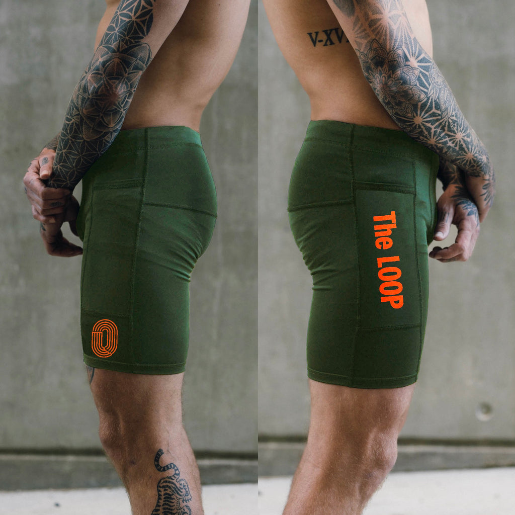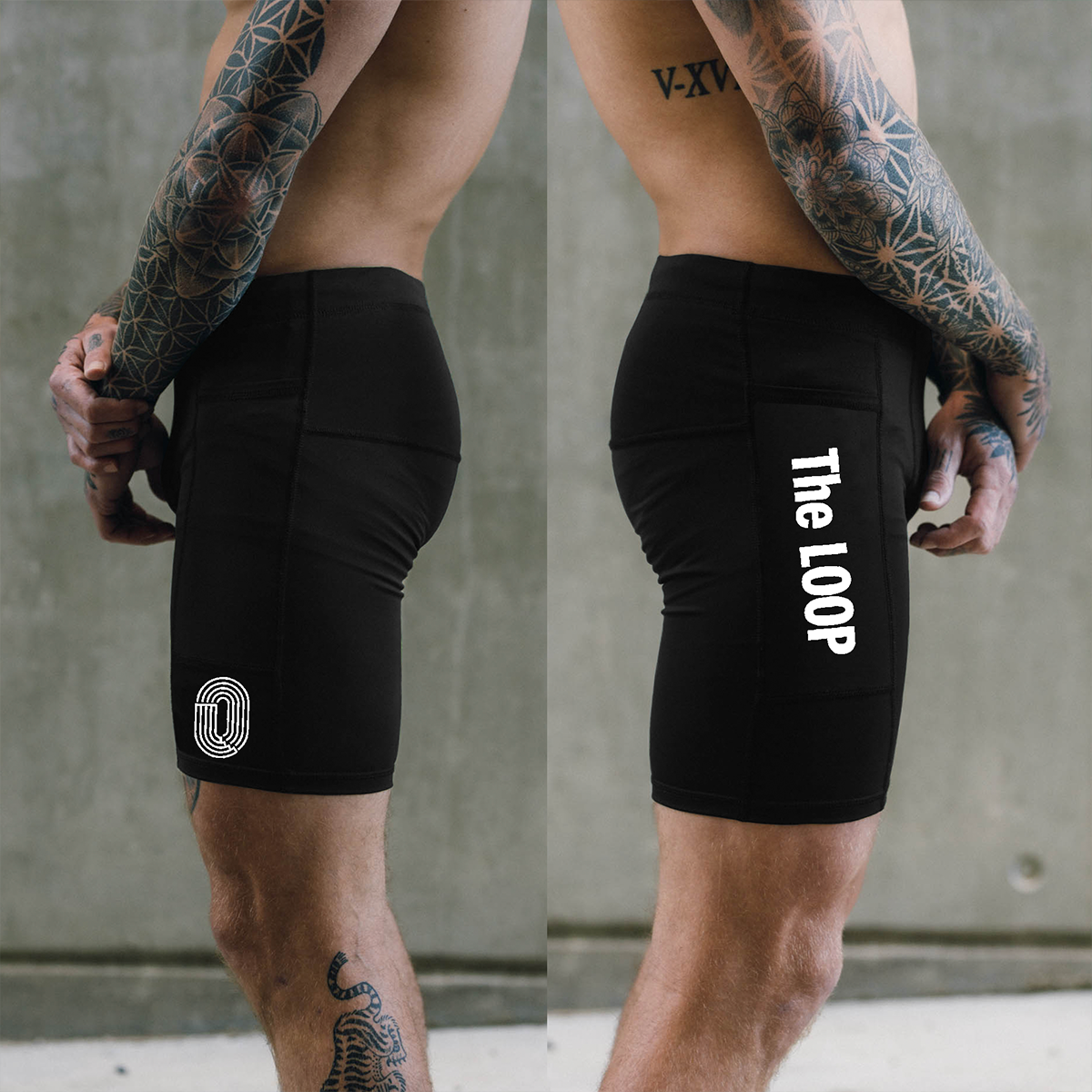 Equipped with 2 side pockets and an internal key pocket. Offering a drawstring for extra customization and 4-way stretch. Built in brief liner to feel held in. Featuring our classic Loop branding in metallic silver. Designed in Austin, TX. Made in the USA.
