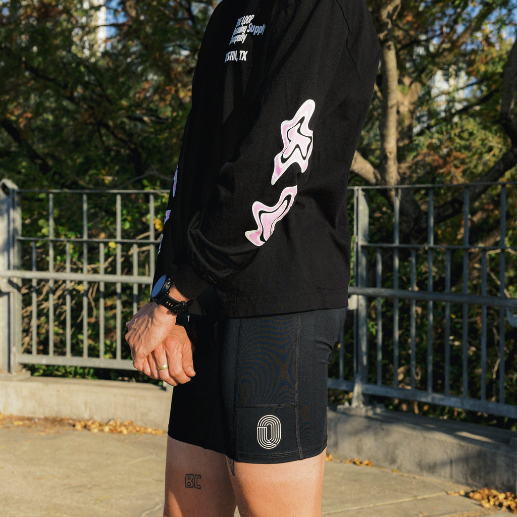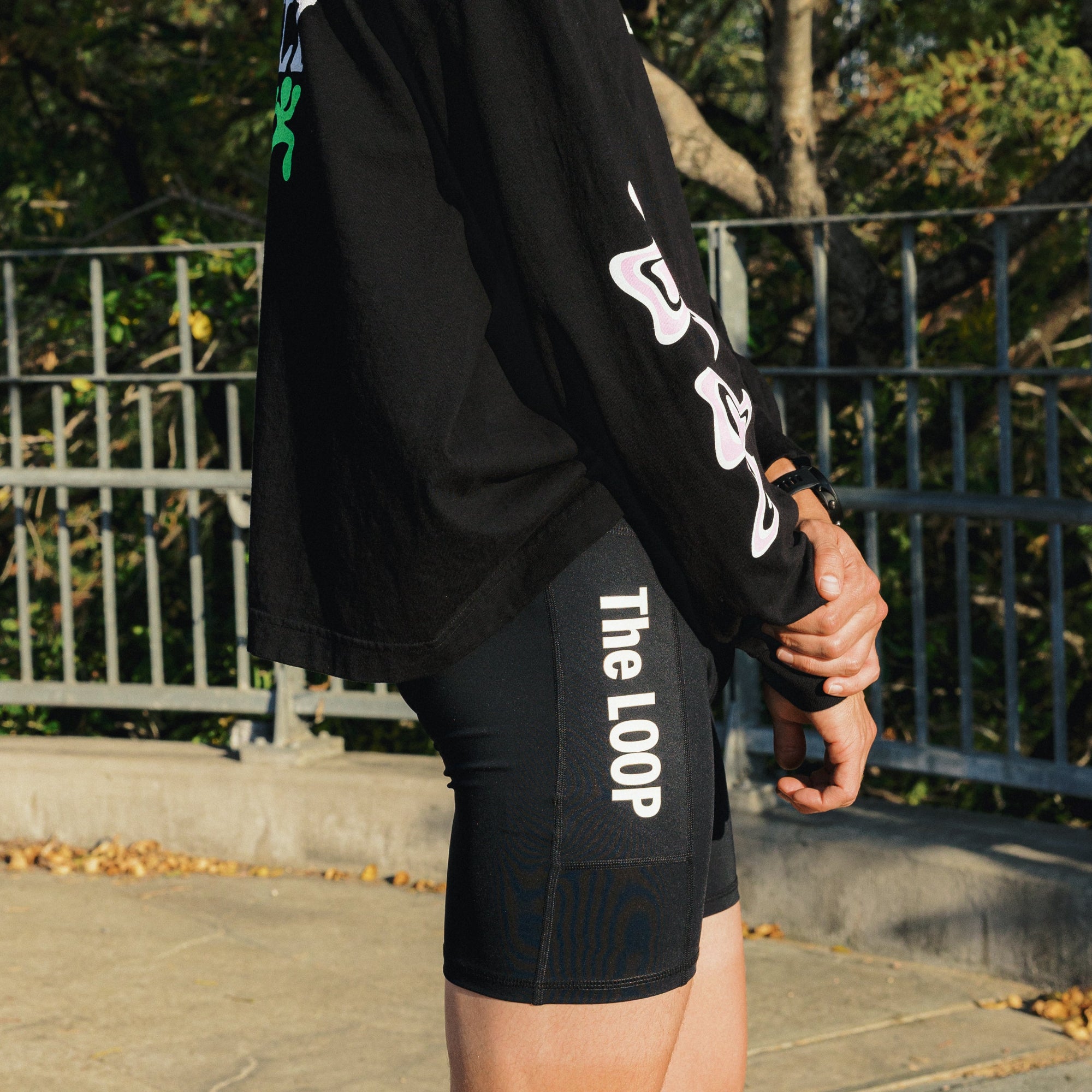 Equipped with 2 side pockets and an internal key pocket. Offering a drawstring for extra customization and 4-way stretch. Built in brief liner to feel held in. Featuring our classic Loop branding in metallic silver. Designed in Austin, TX. Made in the USA.