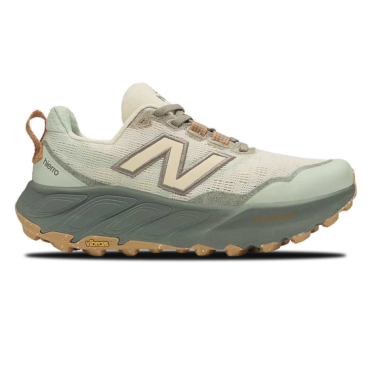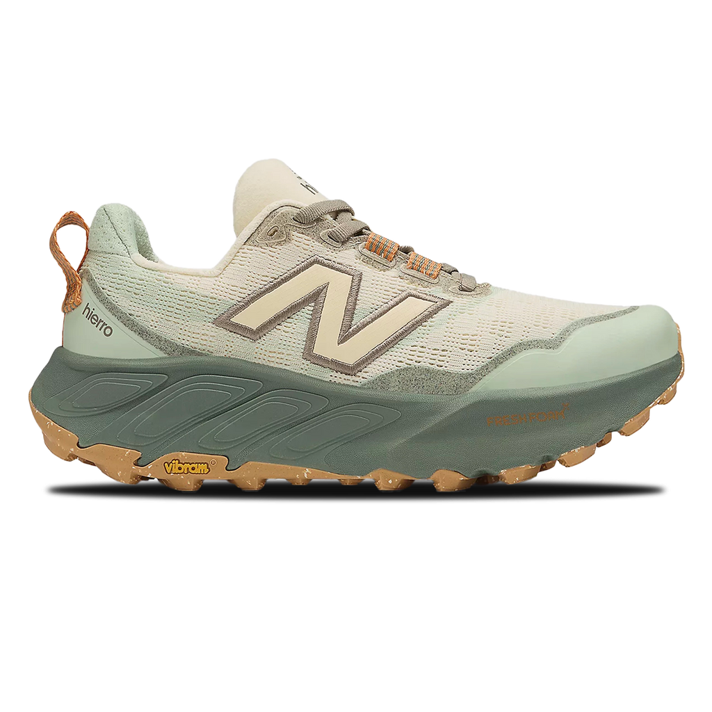 The Fresh Foam X Hierro v9 offers ultimate reliability for adventurous terrain, with technical features designed specifically for the trail runner. Dual-density cushioning combines plush comfort with a more stable underfoot feel. A Vibram® outsole features a revamped tread pattern and deeper, 6mm lugs, for superior traction, and a knit upper with a gusseted tongue is breathable, while helping to protect against loose debris.