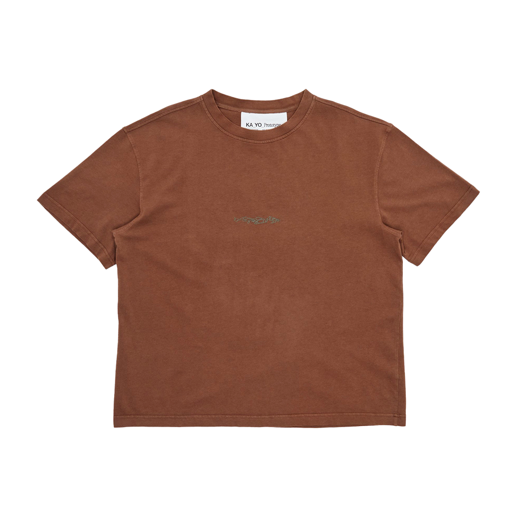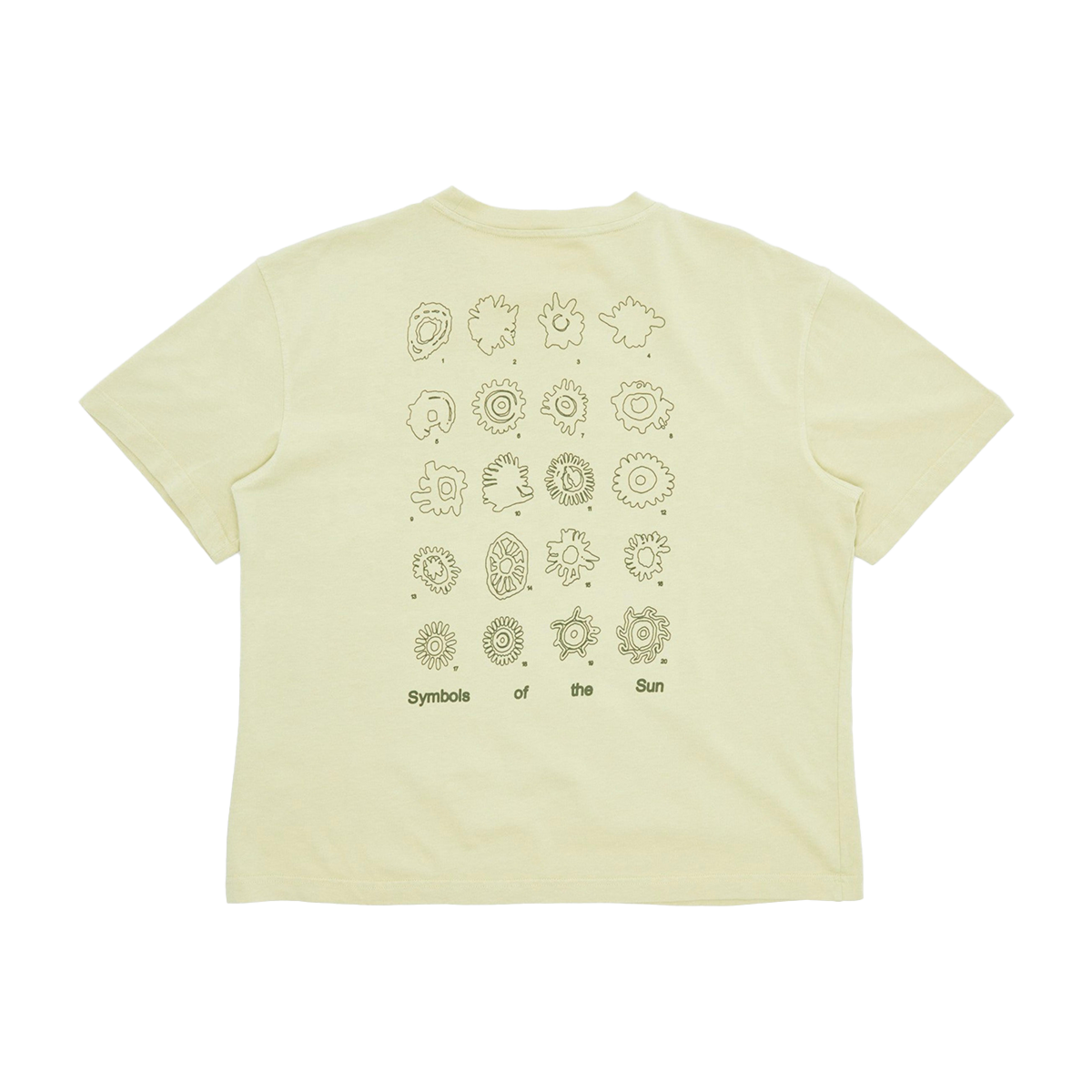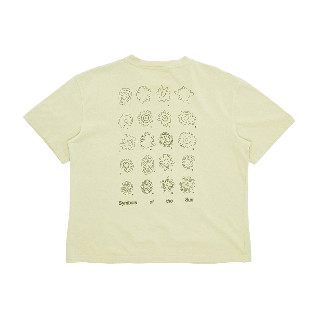 Featuring bold graphic prints on the front and back, it balances sustainable craftsmanship with a modern, boxy silhouette.